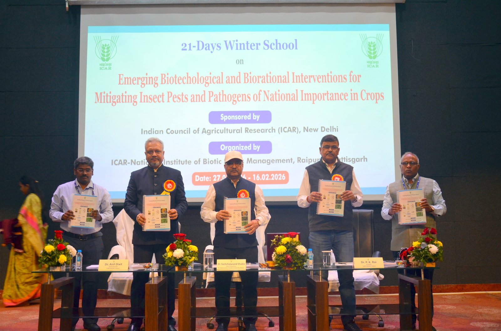 रायपुर (विश्व परिवार)। भारतीय कृषि अनुसंधान परिषद (आई.सी.ए.आर.) द्वारा प्रायोजित “फसलों में राष्ट्रीय महत्व के कीट एवं रोगजनकों के प्रबंधन हेतु उभरती जैव-प्रौद्योगिकीय एवं बायोरेषनल हस्तक्षेप” विषय पर आधारित 21-दिवसीय शीतकालीन प्रशिक्षण कार्यक्रम का आज आई.सी.ए.आर.- राष्ट्रीय जैविक तनाव प्रबंधन संस्थान (एन.आई.बी.एस.एम.), रायपुर में सफलतापूर्वक शुभारंभ किया गया।