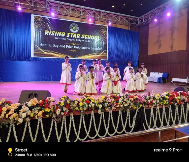 रायपुर। कृष्णा नगर, रायपुर स्थित राइजिंग स्टार स्कूल का प्रथम वार्षिक दिवस एवं पुरस्कार वितरण समारोह शुक्रवार को शहीद स्मारक भवन, जय स्तंभ चौक के समीप भव्य रूप से आयोजित किया गया। कार्यक्रम में विद्यालय के नन्हे विद्यार्थियों ने रंगारंग सांस्कृतिक प्रस्तुतियों से उपस्थित अतिथियों एवं अभिभावकों का मन मोह लिया। कार्यक्रम की मुख्य अतिथि श्रीमती मंजू अवस्थी, नोडल प्राचार्य शशिबाला हायर सेकेंडरी स्कूल, सुकवारी बाजार, गुढ़ियारी रायपुर रहीं। उन्होंने विद्यार्थियों के आत्मविश्वास, अनुशासन एवं मंचीय प्रस्तुति की सराहना करते हुए कहा कि इस प्रकार के आयोजन बच्चों के सर्वांगीण विकास में महत्वपूर्ण भूमिका निभाते हैं। कार्यक्रम में विद्यार्थियों द्वारा पारंपरिक व सांस्कृतिक नृत्य प्रस्तुत किए गए, जिन्हें दर्शकों ने खूब सराहा। मेधावी विद्यार्थियों को पुरस्कार प्रदान कर सम्मानित किया गया। विद्यालय के डायरेक्टर श्री मनीष राजपुत ने अतिथियों एवं अभिभावकों का आभार व्यक्त करते हुए कहा कि राइजिंग स्टार स्कूल बच्चों को गुणवत्तापूर्ण शिक्षा के साथ संस्कार देने के लिए निरंतर प्रयासरत है। इस अवसर पर शिक्षकगण, अभिभावक एवं गणमान्य नागरिक बड़ी संख्या में उपस्थित रहे।