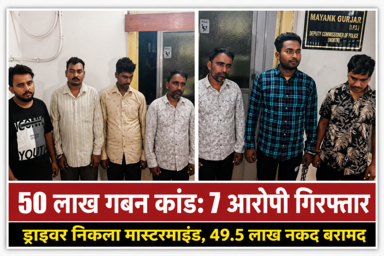 रायपुर (विश्व परिवार)। राजधानी रायपुर में 50 लाख रुपये गबन मामले का पुलिस ने बड़ा खुलासा करते हुए मुख्य आरोपी ड्राइवर कृष्णा साहू समेत कुल 7 आरोपियों को गिरफ्तार कर लिया है। आरोपियों के कब्जे से 49 लाख 50 हजार रुपये नकद, एमजी विंडसर कार (CG 04 QG 6633) और वारदात में इस्तेमाल वर्ना कार (CG 06 HB 8055) जब्त की गई है। जब्त संपत्ति की कुल कीमत करीब 66.50 लाख रुपये आंकी गई है।