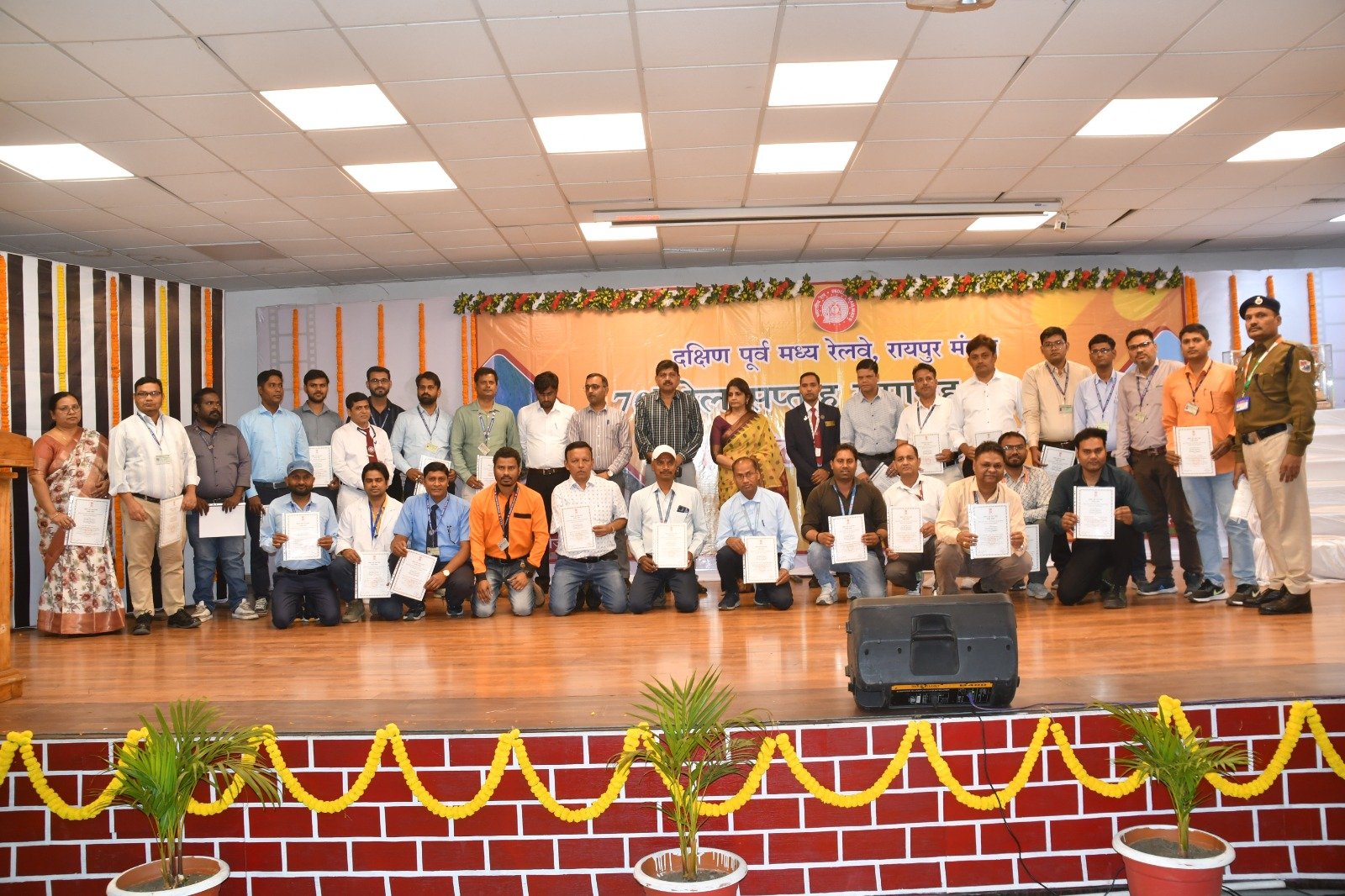 - 70वाँ रेल सप्ताह समारोह 2025 (मंडल रेल प्रबंधक स्तर रेल सेवा पुरस्कार) समारोह में उत्कृष्ट कार्य निष्पादन करने वाले रायपुर मंडल के कर्मचारी मंडल रेल प्रबंधक दयानंद द्वारा सम्मानित