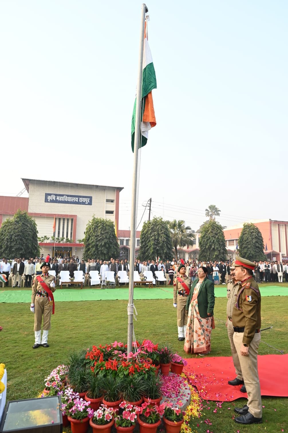रायपुर दिनांक 26 जनवरी 2026। इंदिरा गांधी कृषि विश्वविद्यालय, रायपुर के प्रशासनिक भवन में कुलसचिव डाॅ. कपिल देव दीपक ने राष्ट्रध्वज फहराया और झण्डे को सलामी दी। इस अवसर पर उप कुलसचिव (स्थापना) डॉ. श्रीकान्त चितले, ओ.एस.डी. स्थापना डॉ. यमन कुमार देवांगन, उप कुलसचिव (शैक्षणिक) डॉ. सी.पी. खरे, सहित विश्वविद्यालय प्रशासन के अधिकारी एवं कर्मचारी उपस्थित थे।