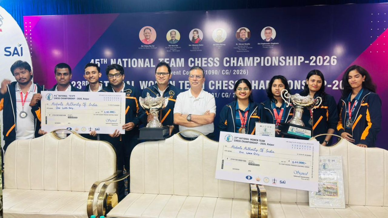 रायपुर (विश्व परिवार)। भारतीय विमानपत्तन प्राधिकरण (AAI) के खिलाड़ियों ने 45वीं पुरुष राष्ट्रीय शतरंज प्रतियोगिता और 23वीं महिला राष्ट्रीय शतरंज प्रतियोगिता में उत्कृष्ट प्रदर्शन करते हुए दोनों ही प्रतियोगिता में रजत पदक हासिल किया. यह प्रतियोगिताएं अग्रसेन धाम, रायपुर में 16 से 22 मार्च तक आयोजित की गईं।