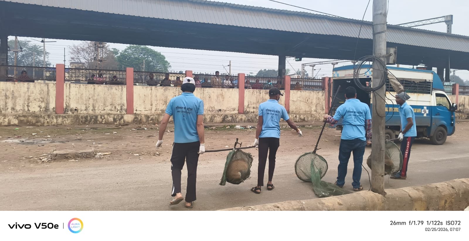 रायपुर (विश्व परिवार)। दक्षिण पूर्व मध्य रेलवे रायपुर रेल मंडल के रायपुर स्टेशन पर रेलवे स्टेशन परिसर में यात्रियों की सुरक्षा, स्वच्छता एवं सुगम रेल संचालन सुनिश्चित करने के उद्देश्य से वरिष्ठ मंडल वाणिज्य प्रबंधक श्री अवधेश कुमार त्रिवेदी के निर्देशन पर रेलवे प्रशासन ने स्थानीय निकाय के सहयोग द्वारा स्टेशन परिसर में आवारा कुत्तों की मानवीय तरीके से धरपकड़ का विशेष अभियान प्रारंभ किया गया है। यह अभियान रायपुर स्टेशन के सभी प्लेटफार्म सहित स्टेशन परिसर में दिनांक 25 एवं 26 फरवरी को चलाया गया जिसमें लगभग 20 आवारा कुत्तों को पकड़ा गया। यह अभियान स्थानीय नगर निगम के सहयोग से चलाया जा रहा है।