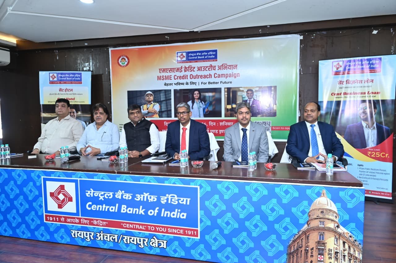रायपुर (विश्व परिवार)। सेन्ट्रल बैंक ऑफ इंडिया आज के दिन सारे भारत में एनएसएमई ऋण आउटरीच कार्यकन आयोजित कर रहा है. इसी तारतम्य में बैंक द्वारा आज रायपुर में छ.ग. चैंबर्स ऑफ कामर्स के सभागार में एमएसएमई त्रऋण आउटरीच कार्यक्रम का सफल आयोजन किया गया. इस कार्यक्रम का उद्देश्य उद्यमियों को हमारे बैंक की एमएसएमई ऋण के नये प्रोडक्ट की जानकारी देना तथा उद्यमियों को एमएसएमई त्रऋण वितरित करना है. इस कार्यक्रम में लगभग 60 उद्यमियों ने इस कार्यक्रम में सक्रिय रूप से भाग लिया।