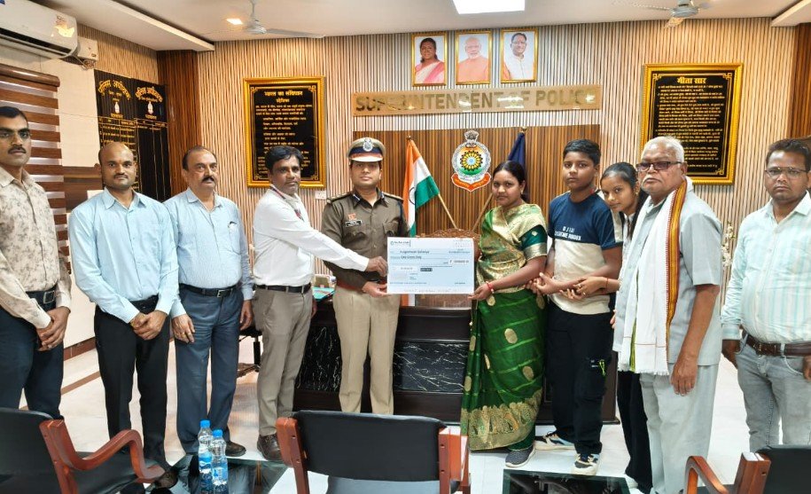 मुंगेली (विश्व परिवार)। मुंगेली वरिष्ठ पुलिस अधीक्षक द्वारा पुलिस ड्यूटी के दौरान सडक़ दुर्घटना में दिवंगत हुए आरक्षक राकेश डाहिरे के परिजनों को राज्य शासन की पुलिस सैलरी पैकेज योजना अंतर्गत 01 करोड़ की आर्थिक सहायता स्वीकृत कर प्रदाय किया गया। मुंगेली पुलिस एसएसपी द्वारा दिवगंत आरक्षक राकेश डहरिया के परिवार को पुलिस सैलरी पैकेज के तहत आर्थिक सहायता 01 करोड़ रूपये का चेक दिया गया बता दें कि जिला मुंगेली के थाना पथरिया में पदस्थ आरक्षक राकेश डहरिया का दिनांक 24.06.2025 को ड्यूटी के दौरान सडक़ दुर्घटना में आकस्मिक निधन हो जाने पर पुलिस विभाग द्वारा गहरा शोक व्यक्त किया गया है।