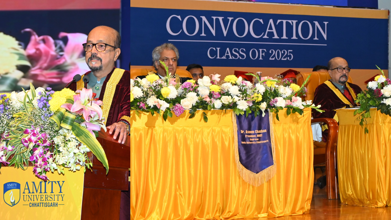डॉ. अशोक के. चौहान, संस्थापक अध्यक्ष, एमिटी विश्वविद्यालय ने विद्यार्थियों से जीवन में एक उद्देश्य निर्धारित करने और विकसित भारत 2047 के लक्ष्य की ओर बढ़ने में योगदान देने का आह्वान किया। डॉ. असीम चौहान, अध्यक्ष, रितनंद बलवेद इंटरनेशनल एजुकेशन फाउंडेशन और चेयरमैन, अमिटी विश्वविद्यालय छत्तीसगढ़ ने कहा कि अमिटी ने छात्रों को जीवन में सफलता प्राप्त करने के लिए मूल्य, दृष्टिकोण और तकनीकी कौशल प्रदान किए हैं।