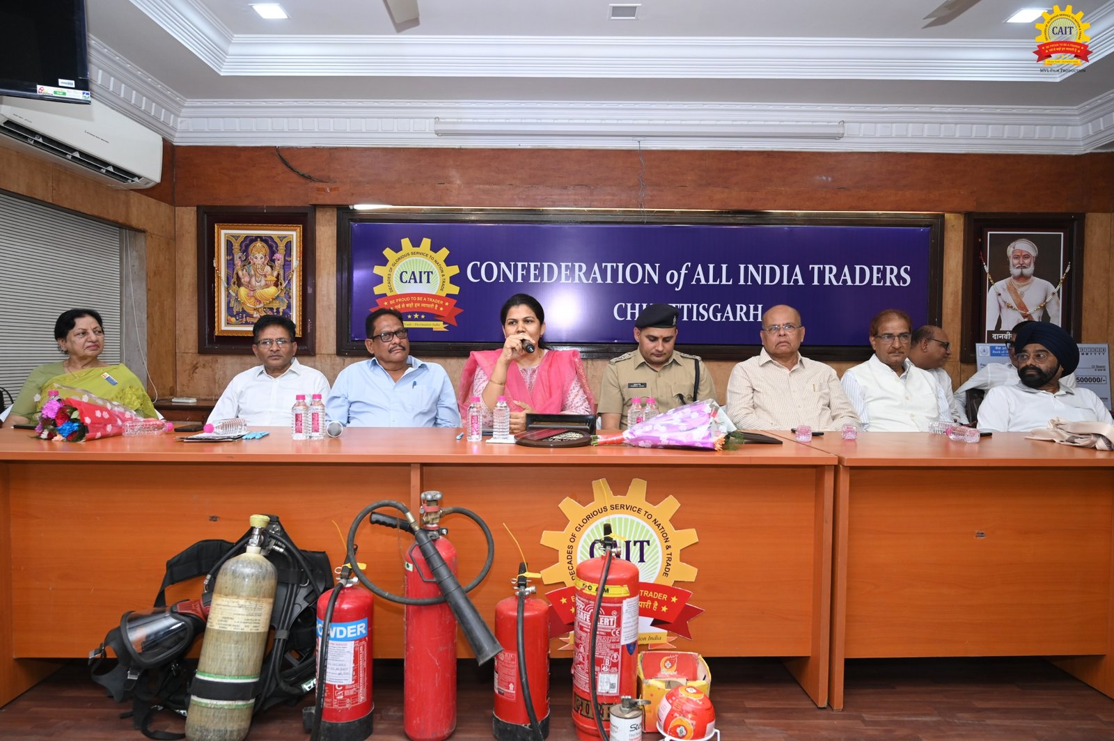 पुष्पराज सिंह ने कहा कि देश में जैविक, रासायनिक जैसे अन्य कई खतरों के साथ-साथ अग्नि संबंधित दुर्घटनाओं से होने वाले नुकसान के बारे में भी बुनियादी तथ्यों की जानकारी होना बेहद आवश्यक है। भारत में बढ़ते शहरीकरण के साथ अग्नि सुरक्षा एक बेहद महत्वपूर्ण विषय है। आज अग्निशमन/ एसडीआरफ की संयुक्त टीम द्वारा कन्फेडरेशन ऑफ ऑल इंडिया ट्रेडर्स (कैट) एवं व्यापारिक संगठनों के पदाधिकारीगणो को प्रारंभिक अग्निदुर्घटना से बचाव/सुरक्षा के संबंध में संगोष्ठि के माध्यम से जागरूक करने के साथ ही मॉक ड्रील के माध्यम से प्रशिक्षण दिया गया। उन्होनें आगे कहा कि आग की रोकथाम हेतु अपने दुकान एवं गोदामो में आग बुझाने वाली उपकरण, निकास मार्ग और निकटतम आग के स्थान का पता करें, आग बुझाने वाली मशीन और इसके संचालन के प्रकार के बारे जानकारी रखें, आग बुझाने व्यक्तिगत सुरक्षा उपकरण और सुरक्षा उपकरणों का उपयोग यानी आग नियत्रंण कक्ष के महत्वपूर्ण टेलीफोन नम्बर याद रखे, आग बुझाने के लिए आग सुरक्षा उपकरणों के आकस्मिक उपयोग के बारें में अग्निशमन विभाग को सूचित करे।