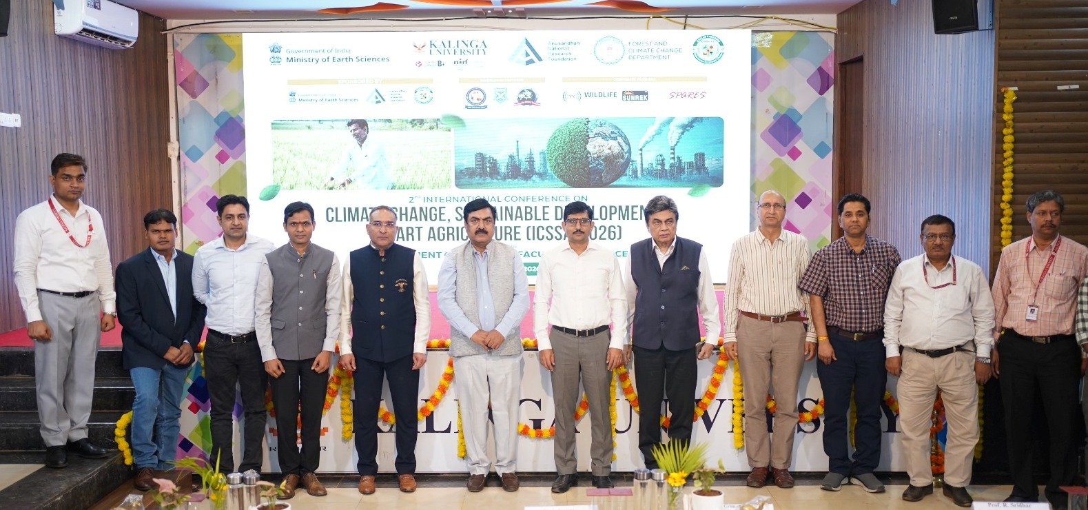 रायपुर (विश्व परिवार)। कलिंगा विश्वविद्यालय, नया रायपुर के प्राणीशास्त्र विभाग, ने 12–13 मार्च 2026 को विश्वविद्यालय परिसर में जलवायु परिवर्तन, सतत विकास और स्मार्ट कृषि पर द्वितीय अंतर्राष्ट्रीय सम्मेलन (ICSSA-2026) का सफलतापूर्वक आयोजन किया। दो दिवसीय इस अंतर्राष्ट्रीय सम्मेलन में भारत तथा विदेशों से आए वैज्ञानिकों, शिक्षाविदों, शोधकर्ताओं और विद्यार्थियों ने भाग लिया तथा उभरती हुई पर्यावरणीय चुनौतियों और उनके सतत समाधान पर विचार-विमर्श किया।