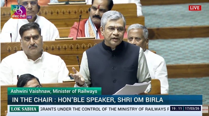 नई दिल्ली (विश्व परिवार)। भारतीय रेलवे वर्तमान में अभूतपूर्व विस्तार और आधुनिकीकरण के दौर से गुजर रही है, जिसे केंद्रीय बजट 2026-27 में ₹2.78 लाख करोड़ के रिकॉर्ड बजटीय आवंटन से सशक्त बनाया गया है। रेल मंत्रालय की अनुदान मांगों (2026-27) पर संसद में हुई चर्चा का जवाब देते हुए, रेल मंत्री श्री अश्विनी वैष्णव ने आज रेखांकित किया कि रेलवे में एक प्रमुख संरचनात्मक सुधार रेल बजट का आम बजट में विलय था, जिसके परिणामस्वरूप तीन प्रमुख लाभ हुए हैं। उन्होंने भारतीय रेल के वर्तमान रूपांतरण को ‘धीमी प्रगति’ से ‘सुपर-फास्ट ट्रांसफॉर्मेशन’ की ओर एक बड़े बदलाव के रूप में वर्णित किया, जो इस राष्ट्रीय परिवहन सेवा के लिए एक नए युग की शुरुआत का प्रतीक है।