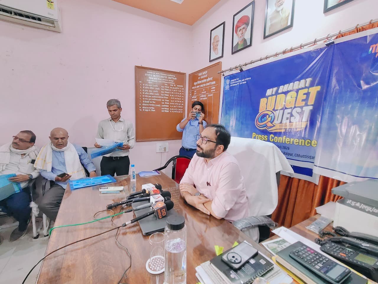 रायपुर (विश्व परिवार)। युवा कार्यक्रम एवं खेल मंत्रालय, भारत सरकार के ‘मेरा युवा भारत’ (MY Bharat) अभियान के अंतर्गत ‘बजट क्वेस्ट 2026’ का भव्य दो दिवसीय फिनाले 12 और 13 अप्रैल को रायपुर में आयोजित किया जाएगा। इस राष्ट्रीय आयोजन का समापन 13 अप्रैल को होगा, जिसमें माननीय मुख्यमंत्री छत्तीसगढ़ विष्णु देव साय, उप-मुख्यमंत्री अरुण साव और केंद्रीय राज्य मंत्री तोखन साहू की गरिमामयी उपस्थिति रहेगी। रायपुर के राजीव गाँधी राष्ट्रिय भूजल प्रशिक्षण एवं अनुसंधान संस्थान एवं ट्रिपल आईटी नया रायपुर संस्थान में होने वाले इस समापन सत्र में शिक्षाविद और विशेषज्ञ ‘शिक्षा, कौशल विकास’ तथा ‘कृषि एवं ग्रामीण अर्थव्यवस्था’ जैसे विषयों पर युवाओं के साथ विचार-मंथन करेंगे।