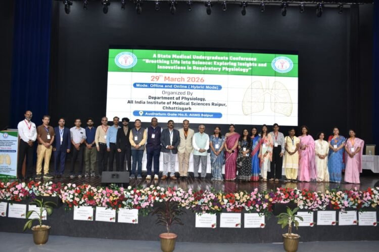 रायपुर (विश्व परिवार)। All India Institute of Medical Sciences Raipur के फिजियोलॉजी विभाग ने 29 मार्च 2026 को प्रथम वर्ष एमबीबीएस छात्रों के लिए रेस्पिरेटरी फिजियोलॉजी पर राज्य स्तरीय स्नातक सम्मेलन का सफलतापूर्वक आयोजन किया। “Breathing Life into Science: Exploring Insights and Innovations in Respiratory Physiology” विषय पर आयोजित इस सम्मेलन में छत्तीसगढ़ के 15 मेडिकल कॉलेजों से 250 से अधिक छात्रों ने भाग लिया। कार्यक्रम में विभिन्न संस्थानों के फिजियोलॉजी विभागाध्यक्ष एवं संकाय सदस्य भी उपस्थित रहे।