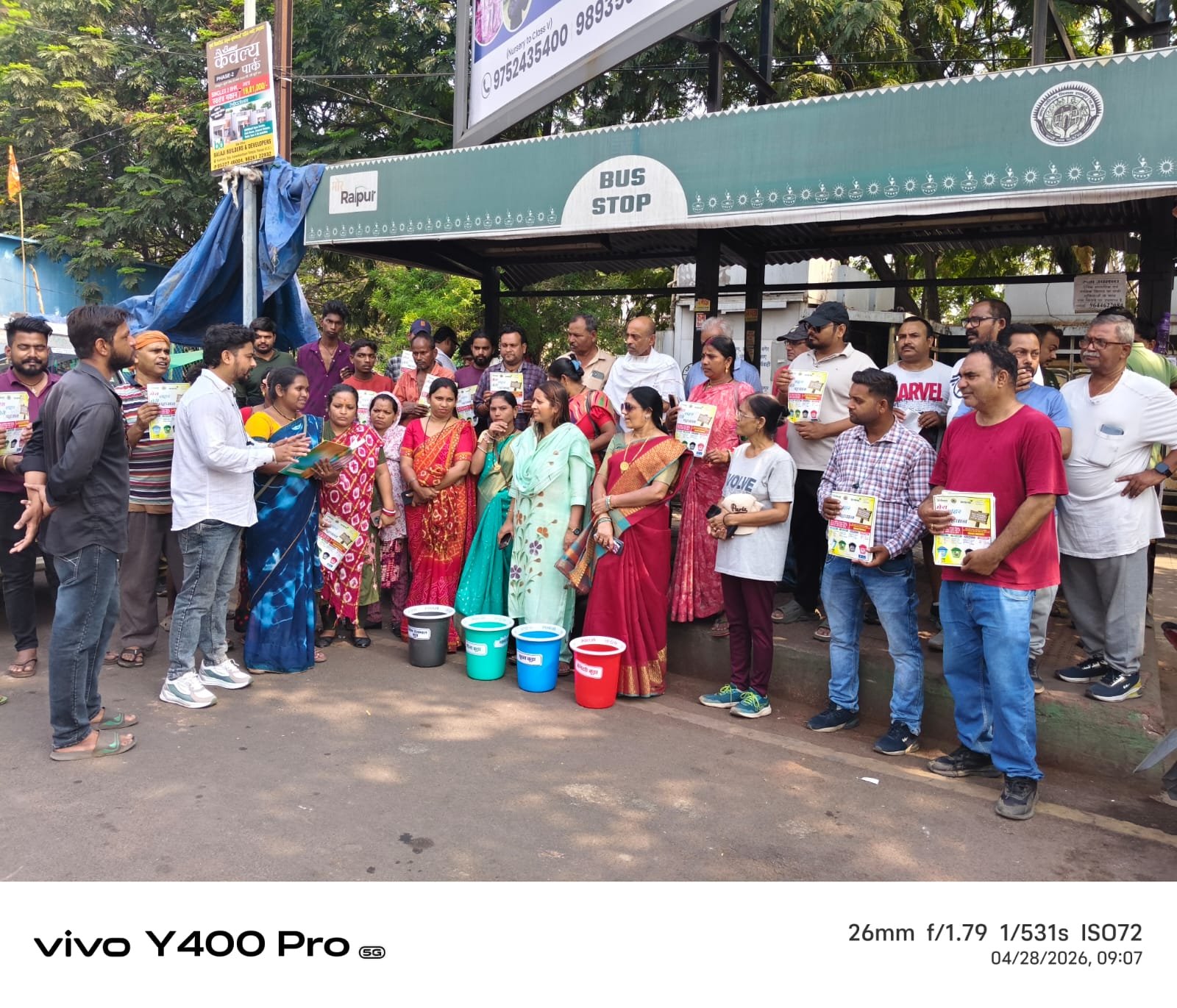 रायपुर (विश्व परिवार) । आज नगर पालिक निगम रायपुर की महापौर मीनल चौबे के निर्देश पर स्वच्छ सर्वेक्षण अभियान 2026 के अंतर्गत रायपुर नगर पालिक निगम जोन 8 स्वास्थ्य विभाग की टीम द्वारा रायपुर नगर निगम स्वास्थ्य विभाग अध्यक्ष गायत्री सुनील चन्द्राकर के नेतृत्व में नगर निगम जोन 8 क्षेत्र के अंतर्गत शहीद भगत सिंह वार्ड क्रमांक 21 क्षेत्र में जीई रोड के किनारे टाटीबंध एम्स हॉस्पिटल के सामने लगने वाले ठेलों, गुमटियों के संचालकों और आमजनों के मध्य नगर निगम जोन 8 स्वास्थ्य विभाग की ओर से सफाई मित्रों और स्वच्छता दीदियों की उपस्थिति में स्वच्छ सर्वेक्षण अभियान 2026 अंतर्गत स्वच्छता जनजागरूकता अभियान चलाकर भजन-कीर्तन के माध्यम से सकारात्मक स्वच्छता संदेश दिया गया।