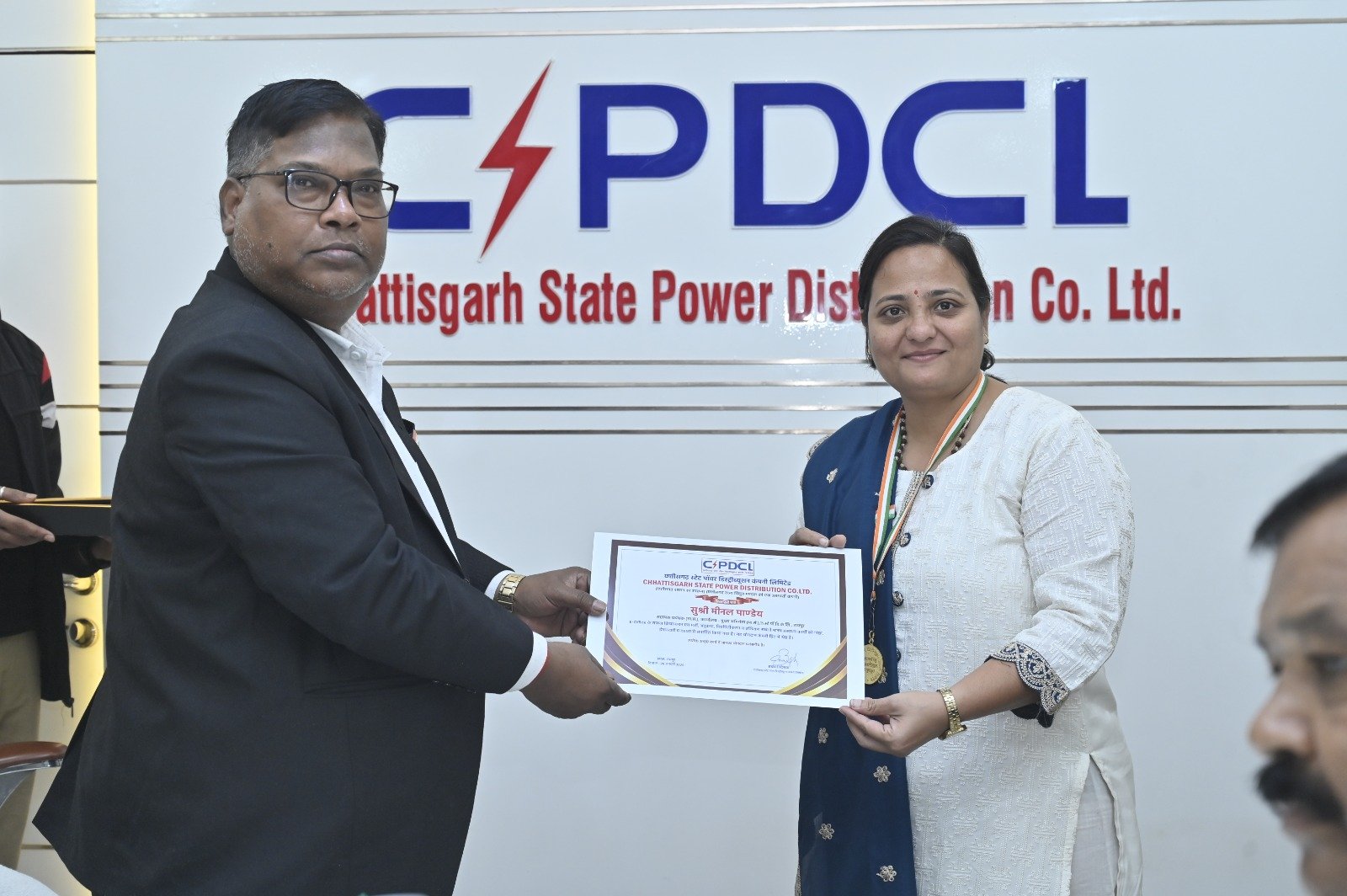 गणतंत्र दिवस के मौके पर उत्कृष्ट कार्य के लिए सम्मानित कार्मिकों में श्रीमती कृतिमा पाण्डेय मिश्रा, कार्यपालन अभियंता, कार्यपालक निदेशक (ई.आई.टी.सी.) को तकनीक नवाचार को बढ़ावा देने, श्री चंद्रशेखर शिंदे, सहायक प्रबंधक (के.ले.ई.) कार्यपालक निदेशक (वित्त) को पेंशन शाखा में लाखों रुपए की रिकवरी तैयार करने और कंपनी को आर्थिक हानि से बचाने, सुश्री मीनल पाण्डेय, सहायक प्रबंधक, मुख्य अभियंता (मा.सं.) को अल्प अवधि में E-Office के सफल क्रियान्वयन, श्री सौरभ कुमार कश्यप, कनिष्ठ अभियंता, नैला (जोन) जांजगीर को ट्रांसफार्मर विफलता दर को 07 प्रतिशत से घटाकर 1.1 प्रतिशत तक लाने, श्री ओम प्रकाश वर्मा, कार्यालय सहायक श्रेणी-तीन, कार्यपालक निदेशक (संचा./संधा.) को विधानसभा के समयबद्ध प्रकरणों एवं उच्च अधिकारियों द्वारा निर्देशित कार्यों को पूर्ण कर्तव्यनिष्ठा, लगन से संपादित करने, श्री कमल किशोर, कार्यालय सहायक श्रेणी-तीन, मुख्य अभियंता (भंडार एवं क्रय) को ई-ऑफिस से संबंधित कार्य, श्री चित्रभान राठौर, डाटा एन्ट्री ऑपरेटर, मुख्य अभियंता (भंडार एवं क्रय) को ट्रांसफार्मर रिपेयर सेक्शन में टेंडर प्रोसेस, स्टेज इंस्पेक्शन से संबंधित कार्य को विशेष दक्षता से संपादित करने, श्री अक्षय देशमुख, डाटा एण्ट्री ऑपरेटर, सहायक यंत्री लिंकरोड जोन,नगर संभाग-एक, बिलासपुर को नवम्बर 2025 तक 53 लाख रुपये बकाया राशि वसूली एवं पीएम सूर्य घर के आवेदनों में त्वरित कार्यवाही करने, श्री चिन्टू राम पटेल, परि० श्रेणी एक (ला०), कनिष्ठ अभियंता (ग्रामीण) वितरण केन्द्र कांकेर को विद्युत लाइन विच्छेदन कार्यवाही में 238 उपभोक्ताओं के राजस्व बकाया राशि रू. 13 लाख 91 हजार रुपए की वसूली करने तथा श्री जावेद अली, लाईन सहायक श्रेणी-2, धौरपुर वितरण केन्द्र, अम्बिकापुर को समयावधि में बिजली आपूर्ति से संबंधित सभी तकनीकी शिकायतों का समाधान करने के लिए प्रबंध निदेशक ने सम्मानित किया। सम्मान समारोह में कार्यपालक निदेशक श्री व्ही के साय, श्री जे एस नेताम, मुख्य अभियंता श्री राजेन्द्र प्रसाद, श्री एम जामुलकर, श्री सुरेश कुमार चक्रवर्ती, श्रीमती चन्द्रकला डिडवानी समेत अन्य वरिष्ठ अधिकारी मौजूद थे।