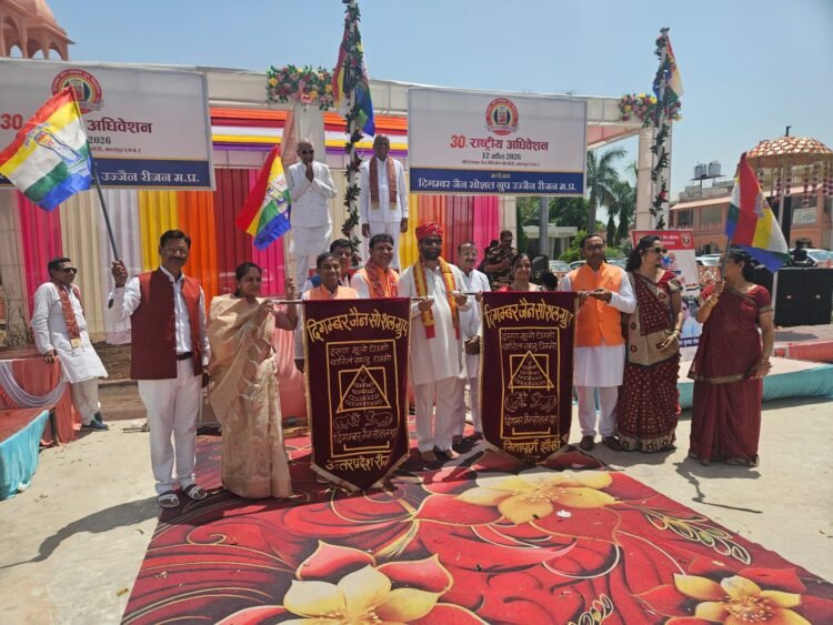 चांदखेड़ी (खानपुर)। जैन समाज की अंतरराष्ट्रीयसंस्था दिगंबर जैन सोशल ग्रुप फेडरेशन के 30 वे राष्ट्रीय अधिवेशन का आयोजन राजस्थान के सुप्रसिद्ध श्री आदिनाथ दि. जैन तीर्थ चाँदखेड़ी मे आज 12 अप्रैल को भव्य समारोह पूर्वक संपन्न हुआ। कार्यक्रम मे देश के बिभिन्न प्रदेशो से लगभग 1000 प्रतिनिधियों द्वारा सहभागिता की गई। कार्यक्रम का शुभारंभ विभिन्न रीजन के द्वारा मुख्य अतिथि श्री प्रदीप जैन “आदित्य” पूर्व केंद्रीय मंत्री, विशिष्ट अतिथि चांदखेड़ी तीर्थ अध्यक्ष श्री हुकुम जैन काका एवं राष्ट्रीय अध्यक्ष श्री मनोहर लाल झांझरी पूर्व अध्यक्ष राकेश विनायका के समक्ष बैनर प्रेजेंटेशन के साथ विधिवत आरंभ हुआ।