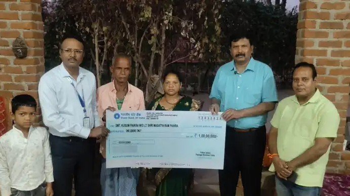 - डीआईजी व एसएसपी सूरजपुर प्रशांत कुमार ठाकुर व एसबीआई रिजनल मैनेजर अविनाश पाणिग्रही ने दिवंगत आरक्षक के गृहग्राम चकेरी पहुंच सौपा 1 करोड़ का चेक