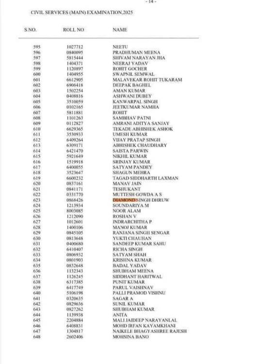रायपुर {विश्व परिवार} : संघ लोक सेवा आयोग (UPSC) ने सिविल सेवा परीक्षा (CSE) 2025 का फाइनल रिजल्ट जारी कर दिया है. अभ्यर्थी अपना रिजल्ट आधिकारिक वेबसाइट upsc.gov.in पर देख सकते हैं. UPSC परीक्षा में छत्तीसगढ़ से धमतरी जिले के डीएसपी डायमंड सिंह ध्रुव ने सफलता हासिल करते हुए 623वां रैंक लाया है। अनुसूचित जनजाति कोटे से उन्हें आईपीएस, आईएएस मिल सकता है। डायमंड सिंह ध्रुव छत्तीसगढ़ राज्य पुलिस सेवा के 2024 बैच के अधिकारी हैं। पुलिस सेवा ज्वाईन करने के बाद भी यूपीएससी की तैयारी करते रहे। आज उनके दोस्तों ने फोन कर जब बधाई दी तो वे आवाक रह गए। धमतरी जिले के ग्राम परसवानी के होनहार युवा डायमंड सिंह ध्रुव का 2024 में छत्तीसगढ़ लोक सेवा आयोग की परीक्षा में प्रथम प्रयास में ही डीएसपी पद पर चयन हुआ। डायमंड सिंह ध्रुव स्वर्गीय बलराम सिंह सूर्यवंशी व शिक्षिका अंबिका सूर्यवंशी के बेटे हैं।