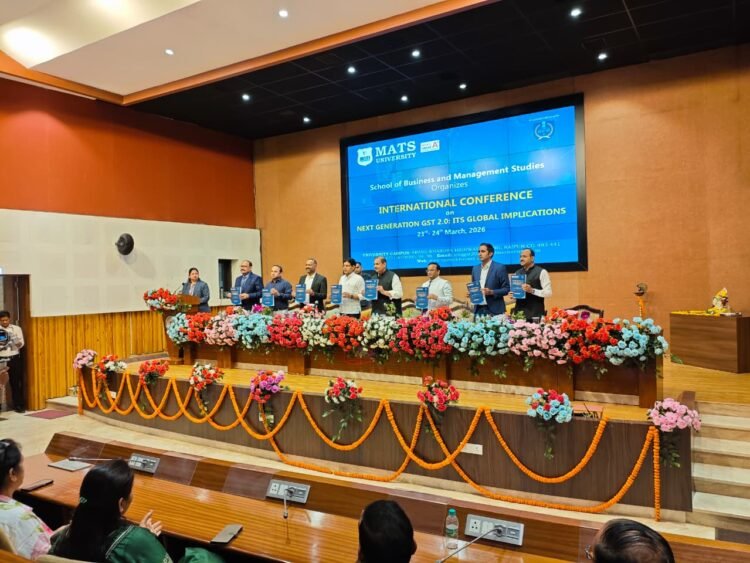 रायपुर (विश्व परिवार)। मैट्स विश्वविद्यालय के स्कूल ऑफ बिजनेस एंड मैनेजमेंट स्टडीज़ द्वारा 23 एवं 24 मार्च 2026 को “नेक्स्ट जेनरेशन GST 2.0: इसके वैश्विक प्रभाव” विषय पर द्विदिवसीय अंतरराष्ट्रीय सम्मेलन का आयोजन न्यू कन्वेंशन हॉल एवं सर्किट हाउस, सिविल लाइंस, रायपुर में बड़े भव्य एवं गरिमामयी ढंग से किया गया। यह सम्मेलन आधुनिक कराधान प्रणाली के नवीनतम आयामों, वैश्विक आर्थिक प्रभावों तथा समकालीन नीतिगत दृष्टिकोणों पर केंद्रित उच्चस्तरीय शैक्षणिक एवं बौद्धिक संवाद का एक सशक्त मंच सिद्ध हुआ। इसमें देश-विदेश के विद्वान, शोधकर्ता और शिक्षाविद् सक्रिय रूप से सम्मिलित हुए।