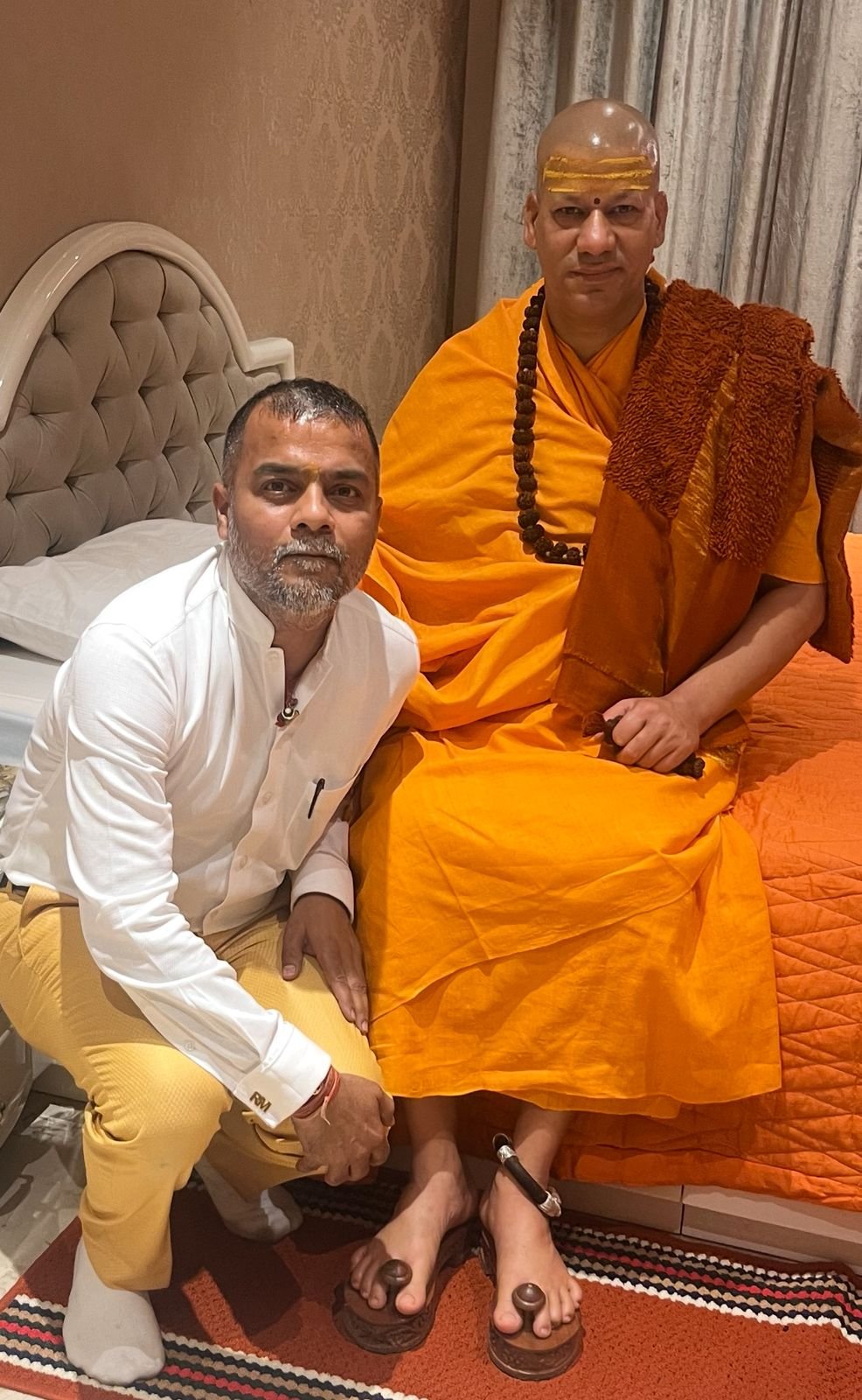 रायपुर (विश्व परिवार)। परम पूज्य गुरु जी निरंजन पीठाधीश्वर श्री श्री 1008 आचार्य महामंडलेश्वर स्वामी कैलाशानंद गिरी जी महाराज जी से उनके प्रिय शिष्य राजीव मूंदड़ा (टुन्नु भईया) जी ने आशीर्वाद लिया एवं छत्तीसगढ़ प्रदेश के विकास, प्रगति एवं सुख समृद्धि की कामना की।